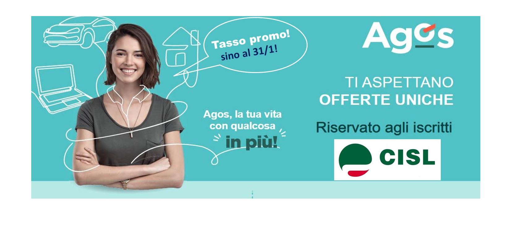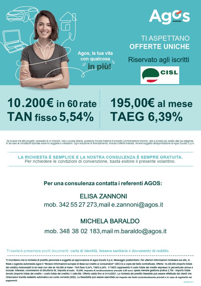 AGOS ha esteso sino al 31 gennaio la durata della sua promozione speciale rivolta a tutti gli iscritti CISL.
